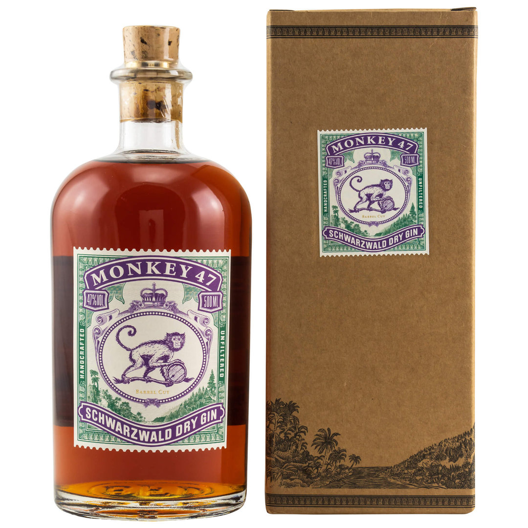 Una edición envejecida en barrica de la galardonada ginebra Monkey 47, envejecida en barricas de moras nuevas, hechas a mano y ligeramente tostadas, procedentes de la Selva Negra. Esta expresión única solo se produce un puñado de veces al año.